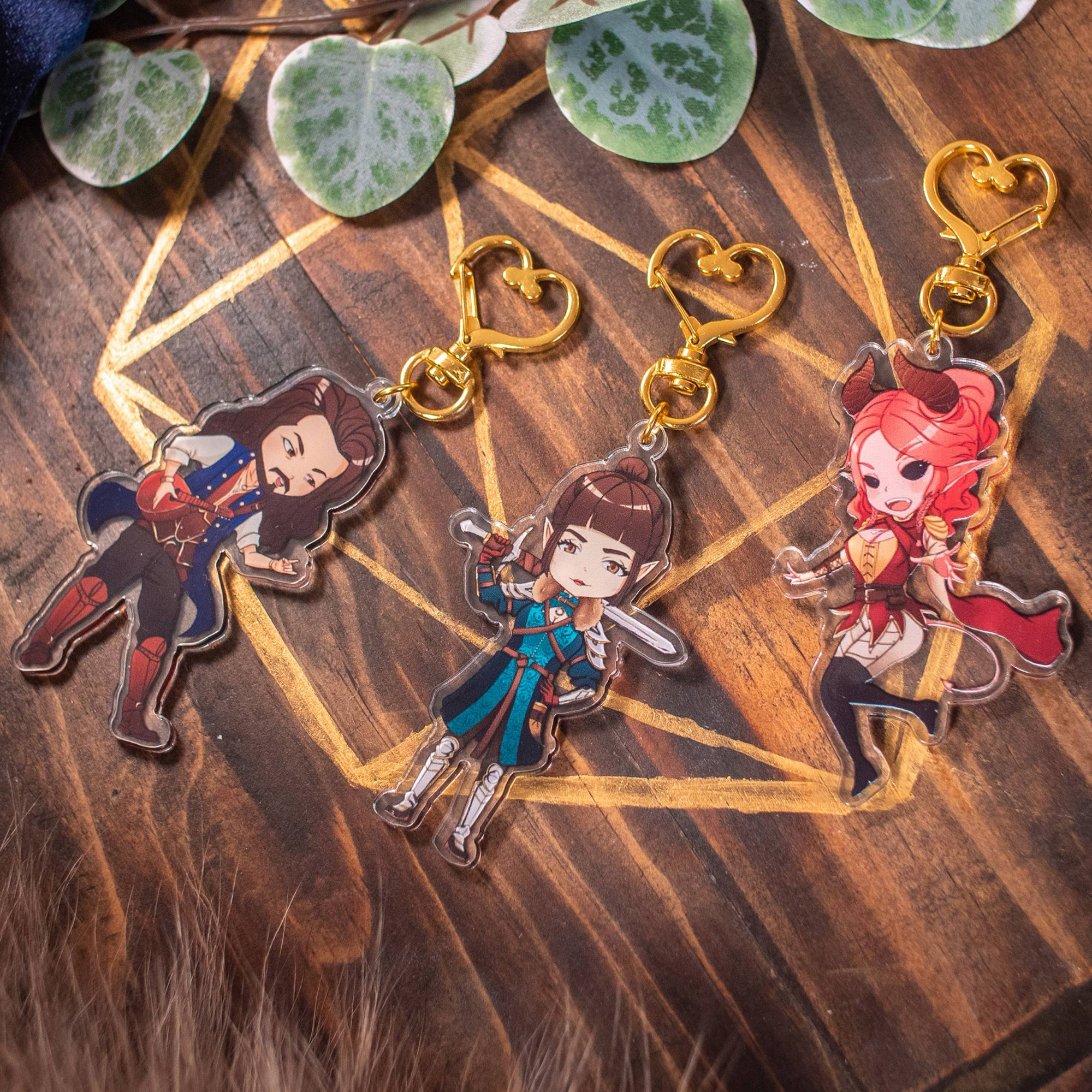 Includes all 3 Party Member Keychains Design: Double Sided Size: ~80mm/3.2" Tall Clasp: Gold Swivel Heart Art by Wonyo