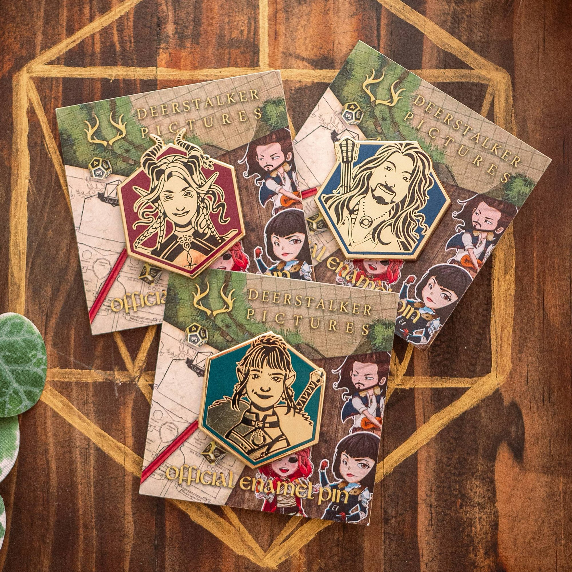 Includes all 3 Hex Pins Size: 35mm/1.4" tall Plating: Gold Plating Enamel: Hard enamel Backings: 2 Black Rubber Art by Chamberlain Art