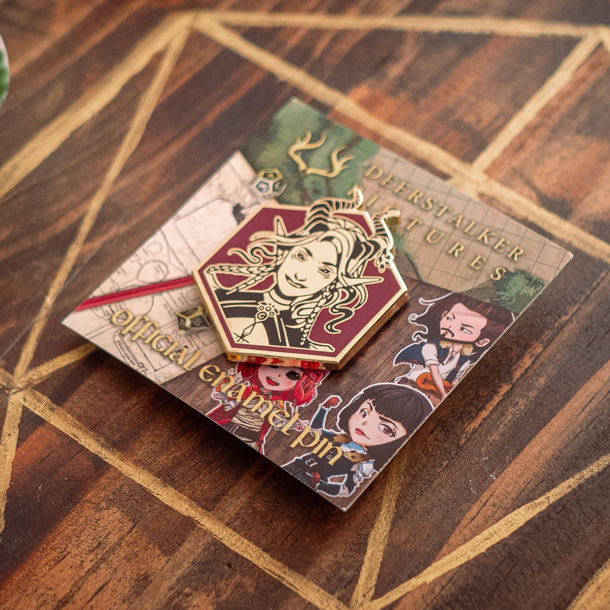Size: 35mm/1.4" tall Plating: Gold Plating Enamel: Hard enamel Backings: 2 Black Rubber Art by Chamberlain Art