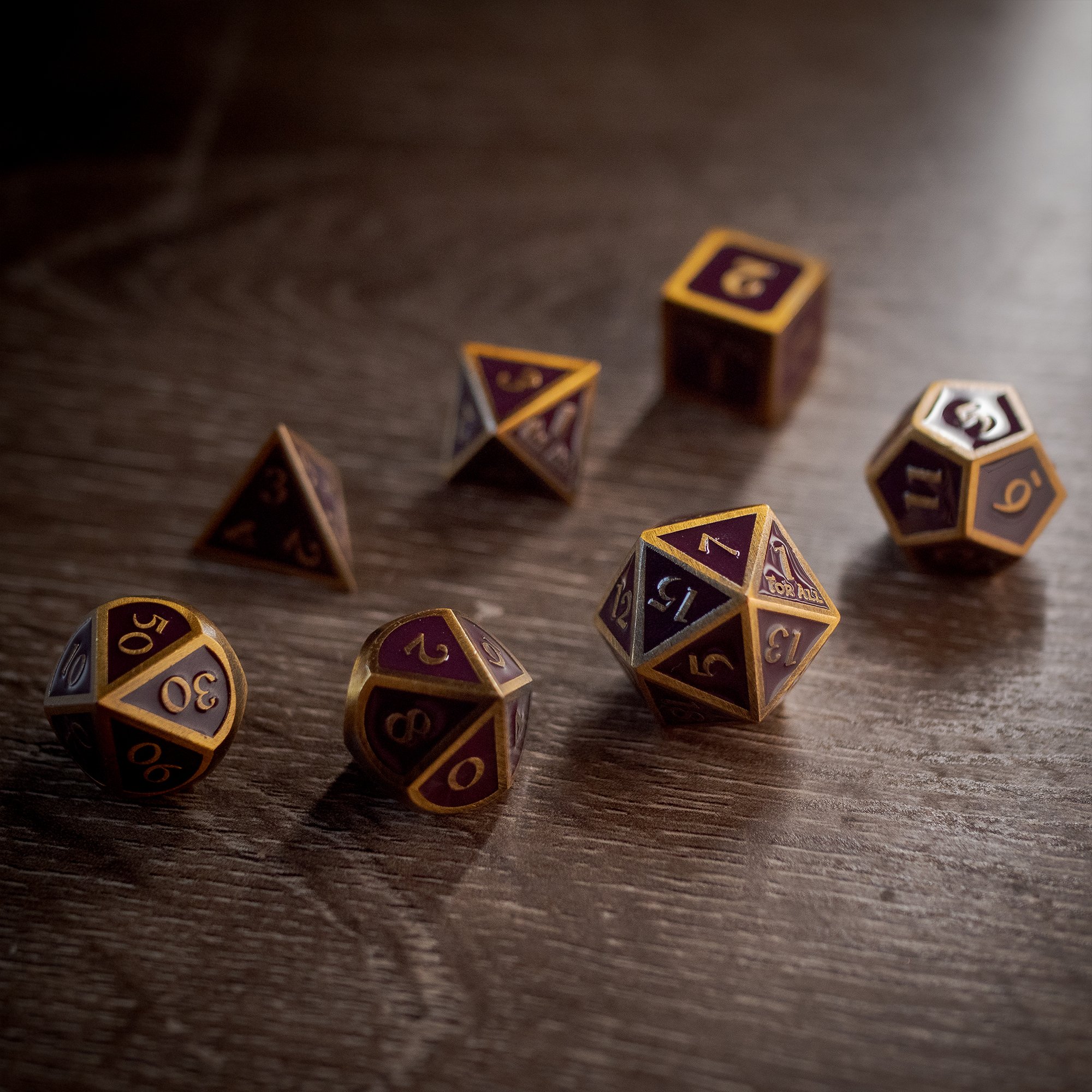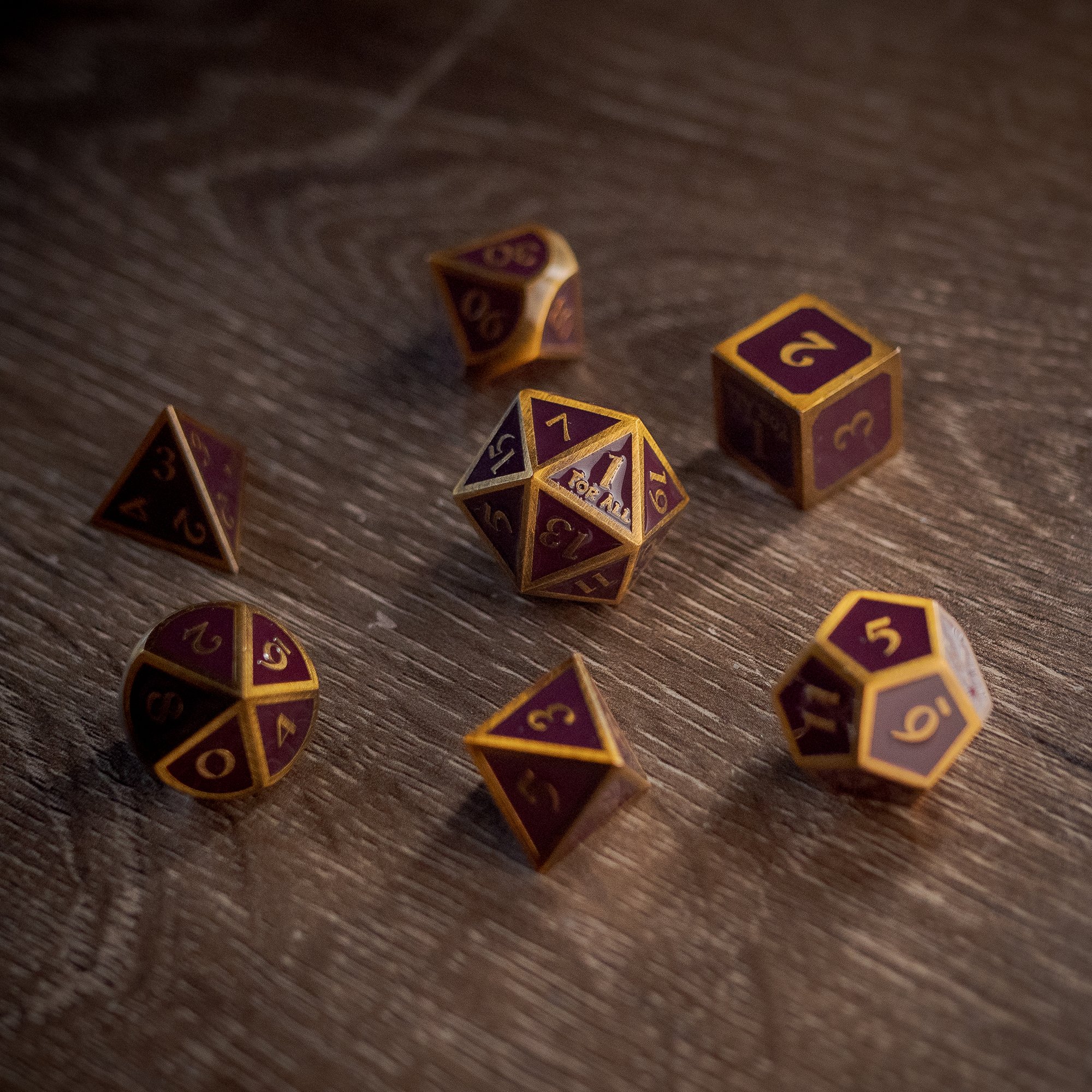 7 Piece Dice Set Plating: Antique Gold Enamel: Hard Enamel Packaged in our Loyalty Dice Bag This is a 2nd Grade item due to the incorrect colour and enamel styling.